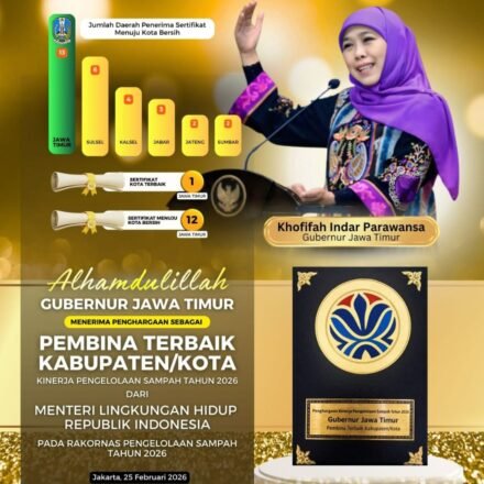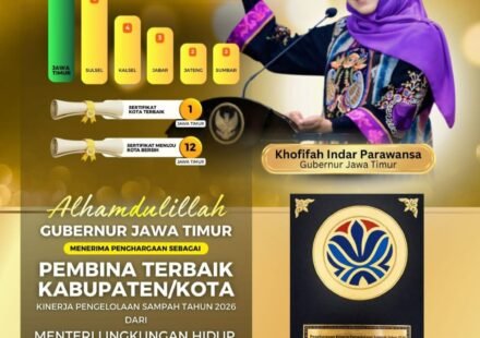 Surabaya Motim – Provinsi Jawa Timur kembali menorehkan prestasi di bidang pengelolaan sampah tingkat nasional. Gubernur Jawa Timur Khofifah Indar Parawansa menerima Penghargaan Kinerja Pengelolaan Sampah 2026 sebagai Pembina Terbaik…
