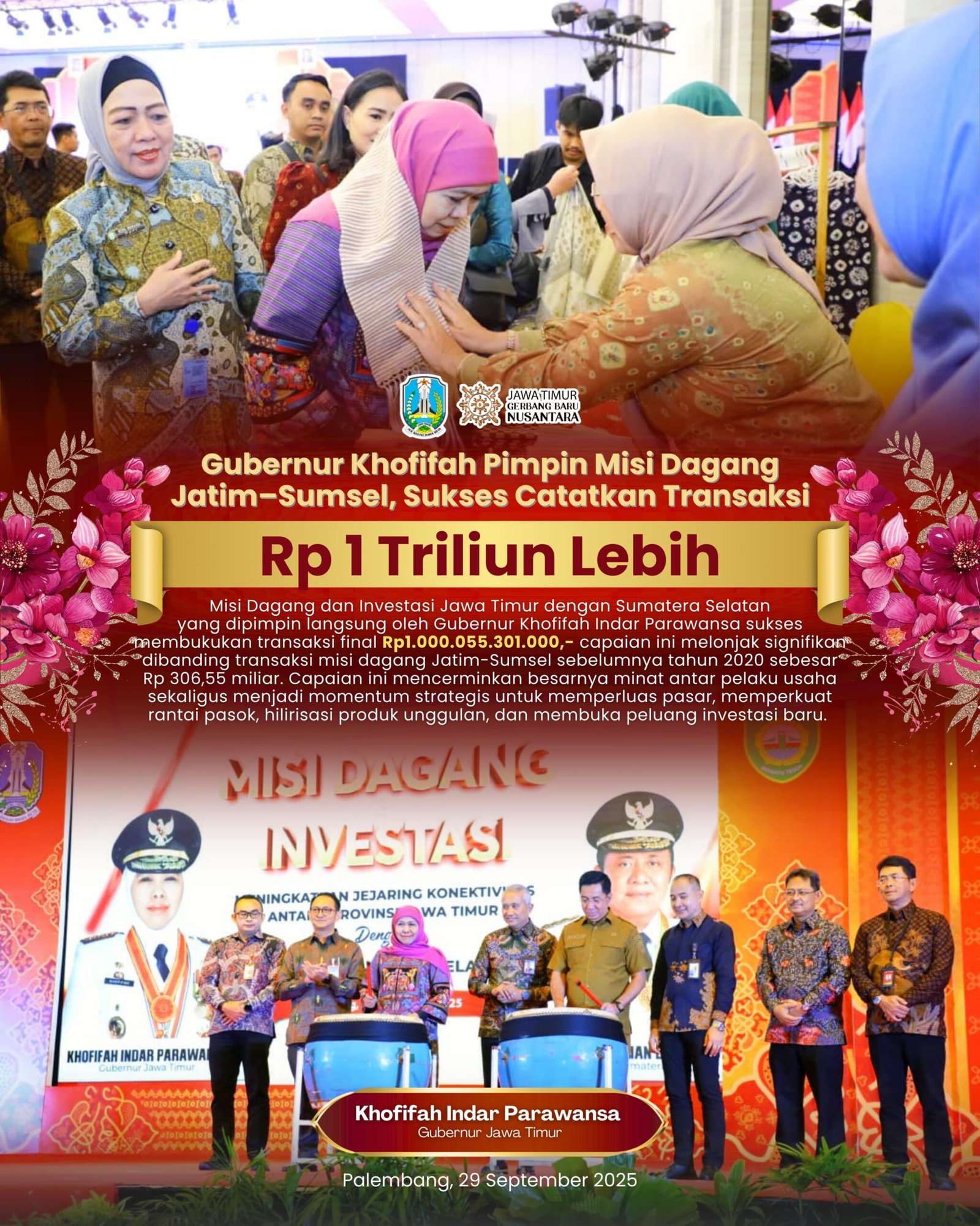 Baca SelengkapnyaGubernur Khofifah Pimpin Misi Dagang Jatim-Sumsel Sukses Catatkan Transaksi Signifikan Capai Rp 1 Triliun Lebih, Optimis Perluas Pasar dan Perkuat Jejaring Perdagangan Antar daerah