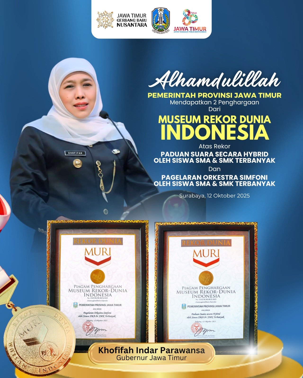 Baca SelengkapnyaDua Rekor MURI Jadi Kado Istimewa HUT ke-80 Provinsi Jawa Timur, Gubernur Khofifah: Persembahan Harmoni Generasi Emas Dari Bumi Majapahit.