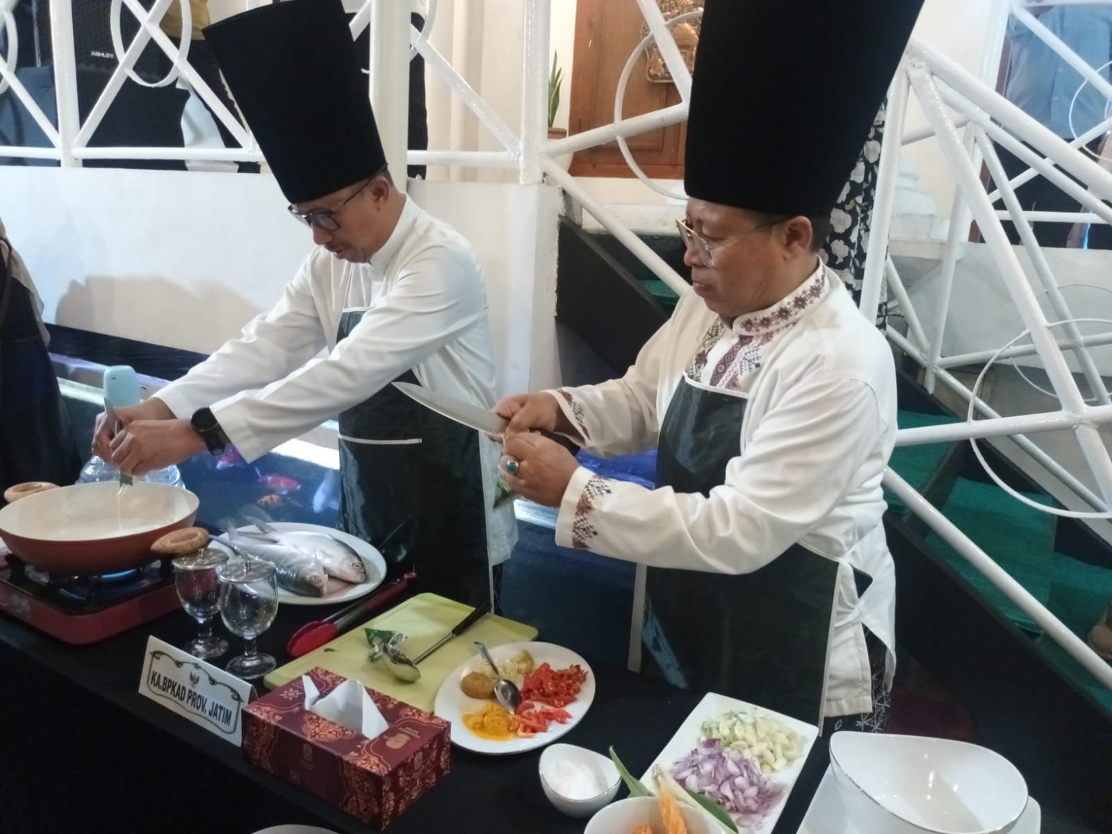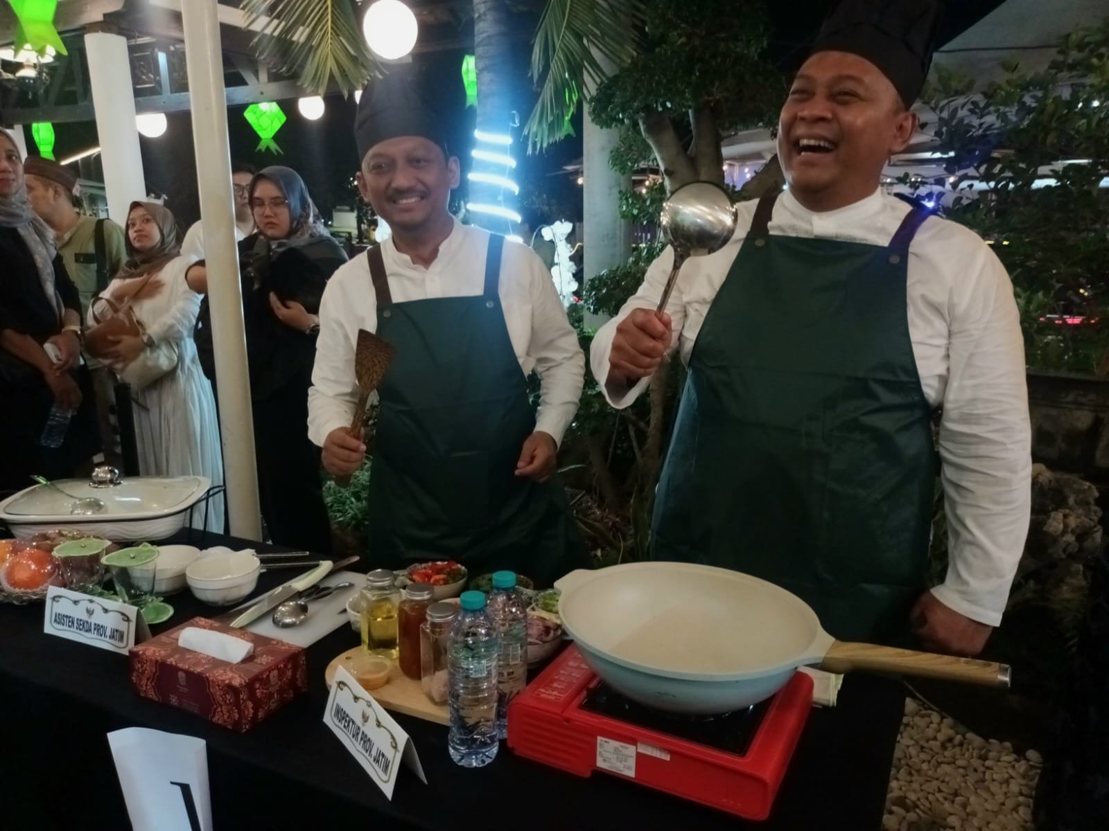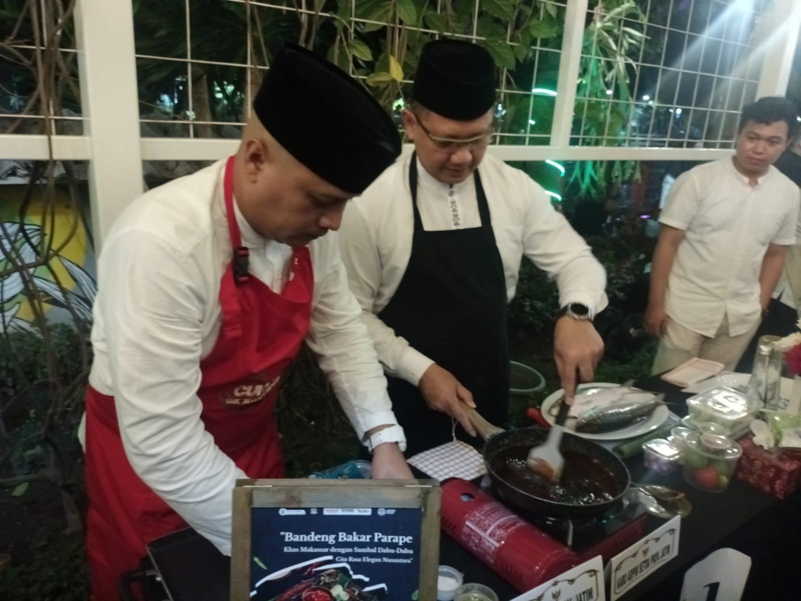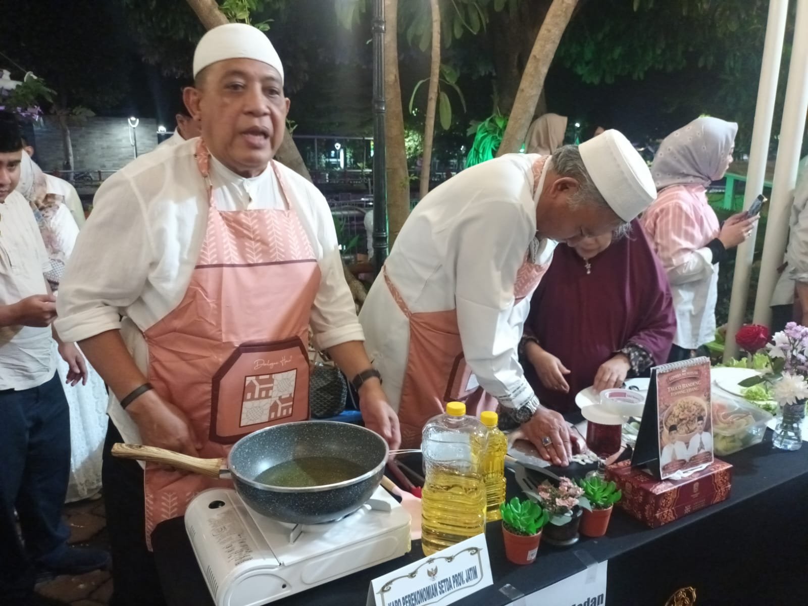 Setelah Qiyamul Lail rampung, Gubernur Khofifah mengajak para kepala OPD menuju Gazebo Grahadi untuk menerima tantangan dalam Lomba Masak Berbahan Dasar Bandeng Gresik.