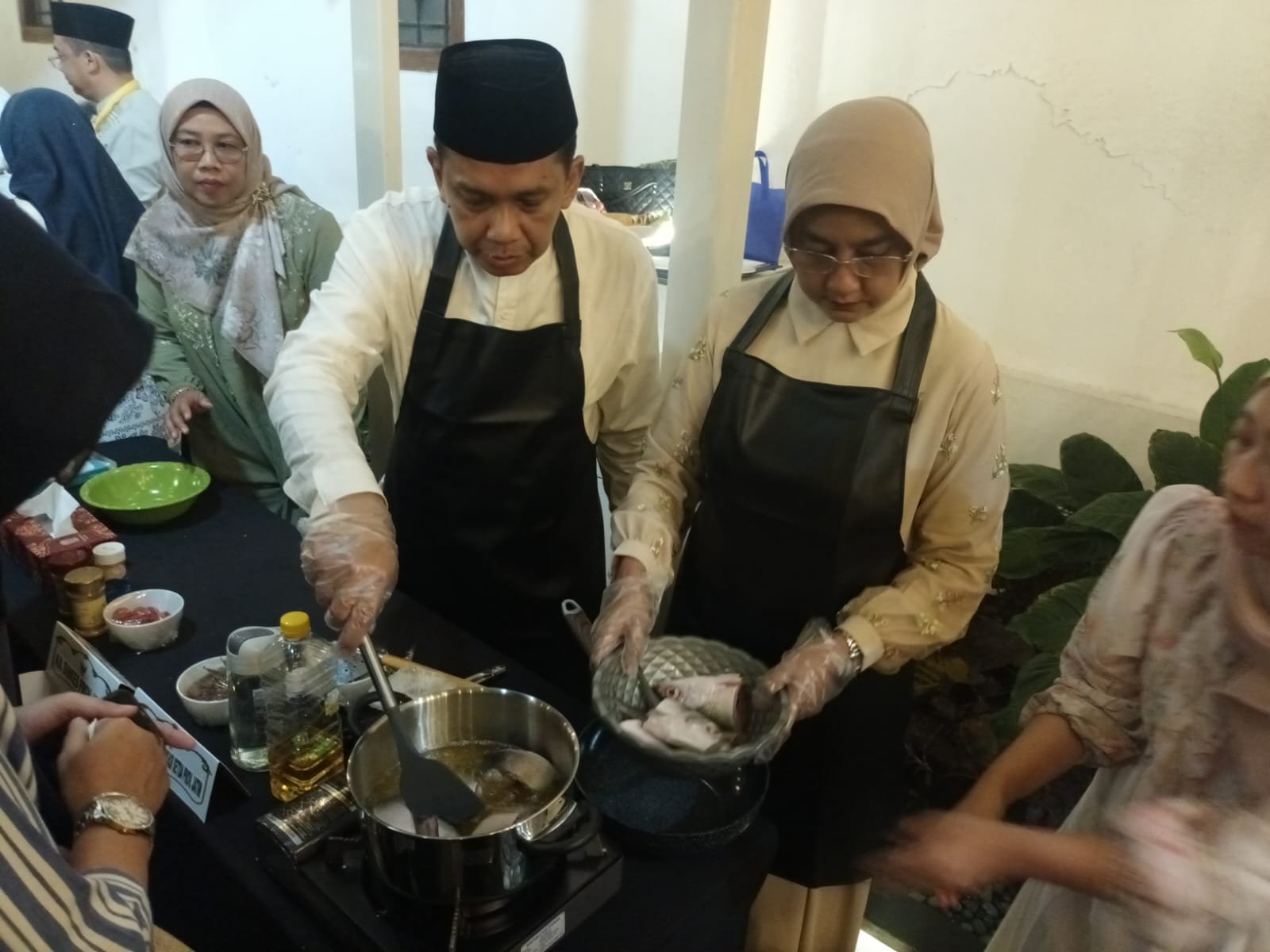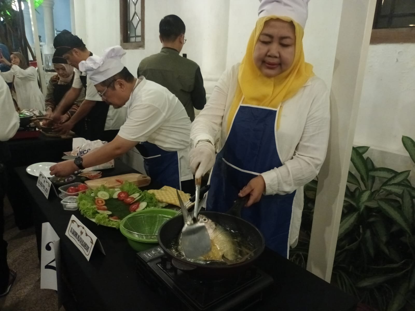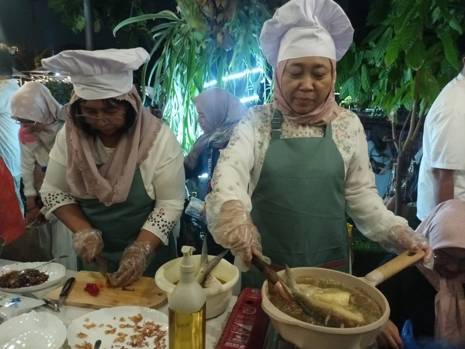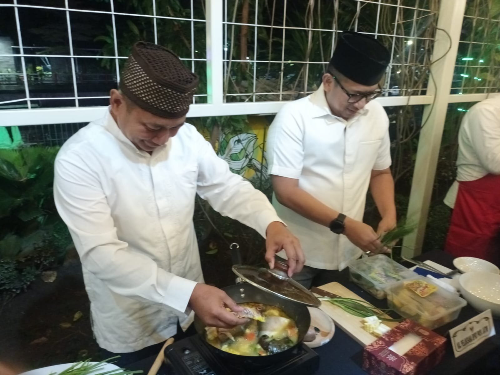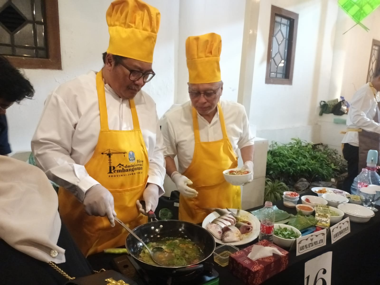 Setelah Qiyamul Lail rampung, Gubernur Khofifah mengajak para kepala OPD menuju Gazebo Grahadi untuk menerima tantangan dalam Lomba Masak Berbahan Dasar Bandeng Gresik.