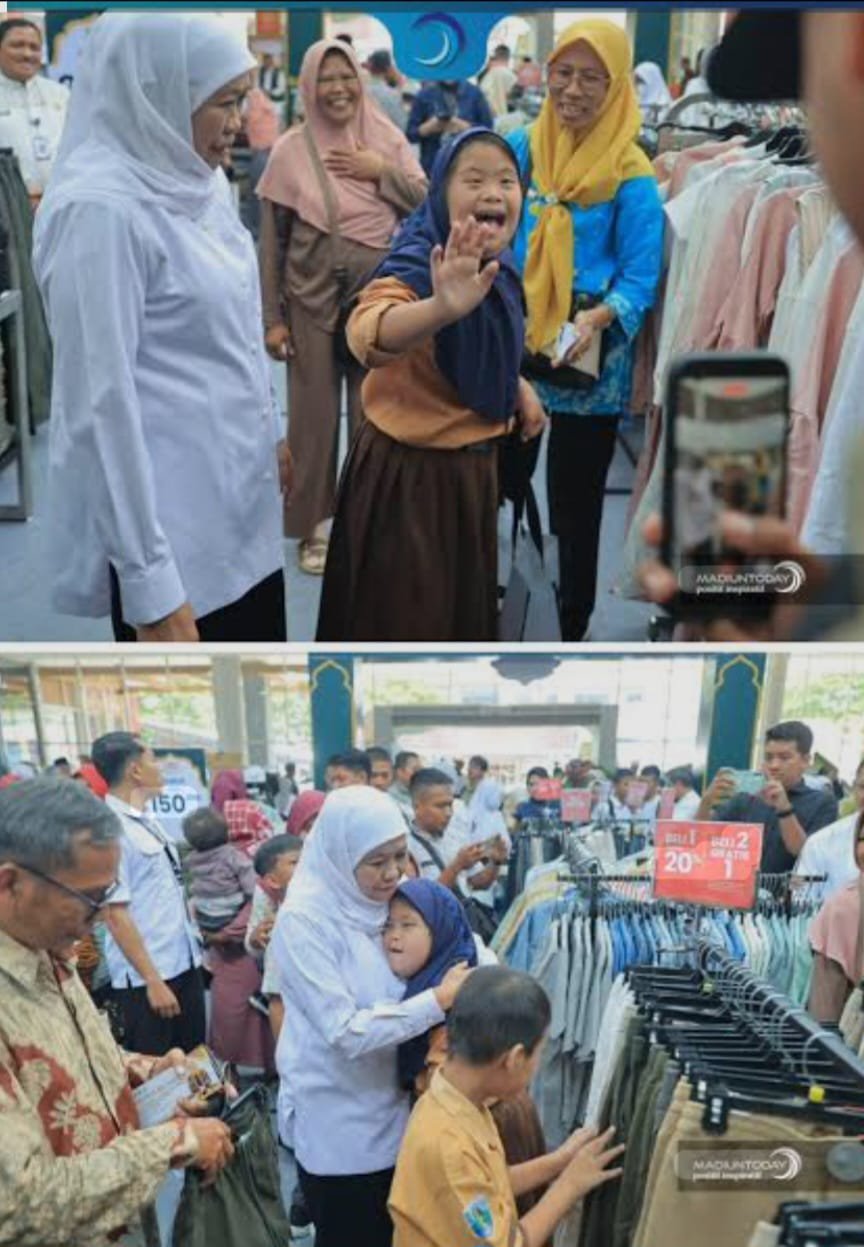 “Terima kasih Ibu Gubernur Khofifah,” katanya. Ia membeli celana, baju, dan sandal untuk dipakai saat Hari Raya.