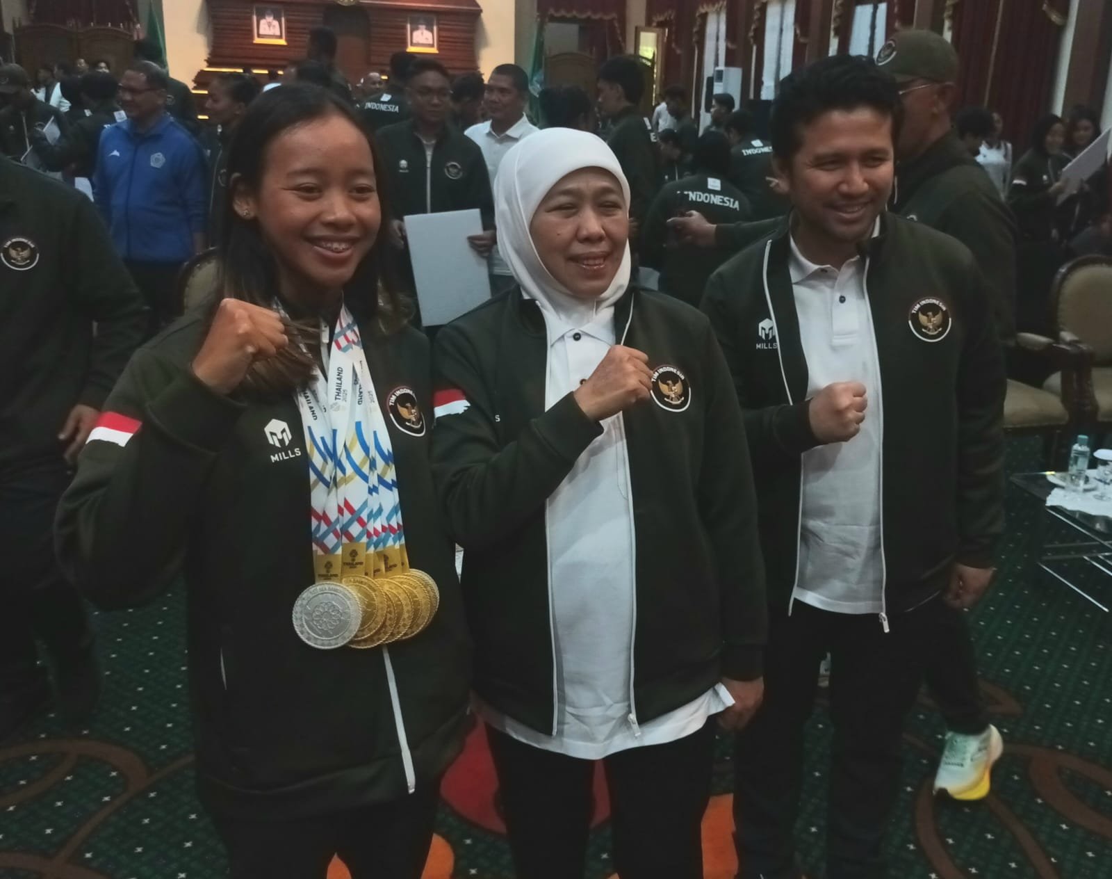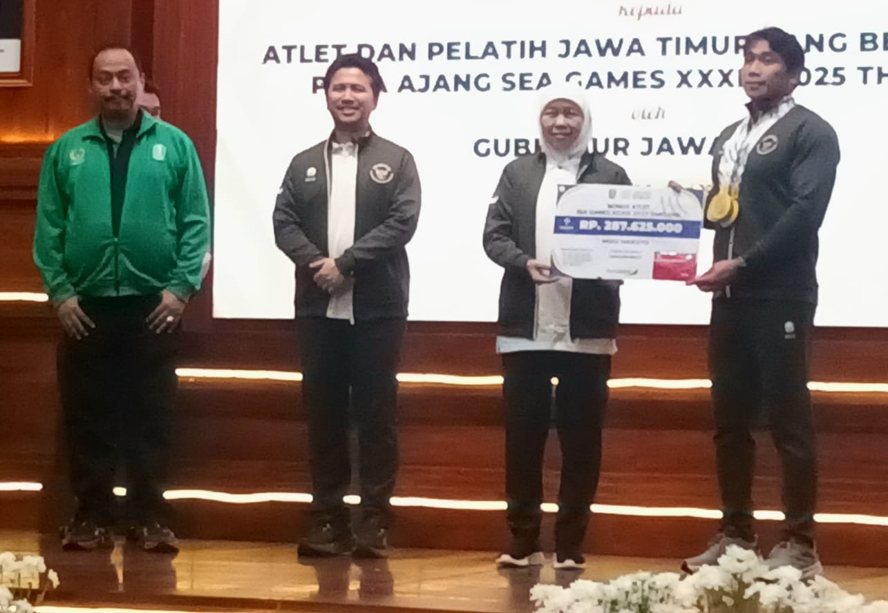 Gubernur Jawa Timur Khofifah Indar Parawansa memberikan bonus kepada para atlet dan pelatih yang mengikuti Sea Games XXXIII 2025 Thailand. Sebanyak 134 atlet dan 27 pelatih mendapat apresiasi atas upaya mengharumkan nama Jatim di kancah internasional.