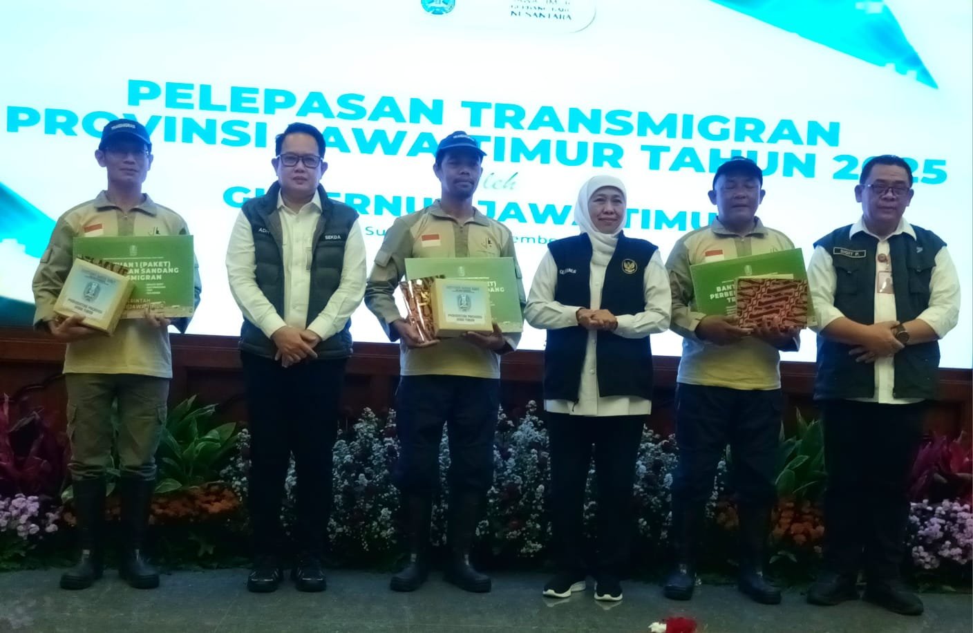 Surabaya Motim – Gubernur Jawa Timur, Khofifah Indar Parawansa secara resmi melepas pemberangkatan 16 kepala keluarga (KK) atau 55 jiwa calon transmigran asal Jawa Timur tahun 2025 menuju Sulawesi Selatan, Sulawesi Barat, dan Maluku Utara.