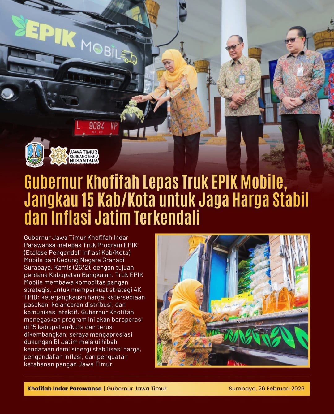Gubernur juga menghadirkan Epik Mobile. Program ini bertujuan menekan inflasi pangan di Jatim dengan menyediakan bahan pangan dengan harga terjangkau, terutama di daerah yang mengalami lonjakan harga.