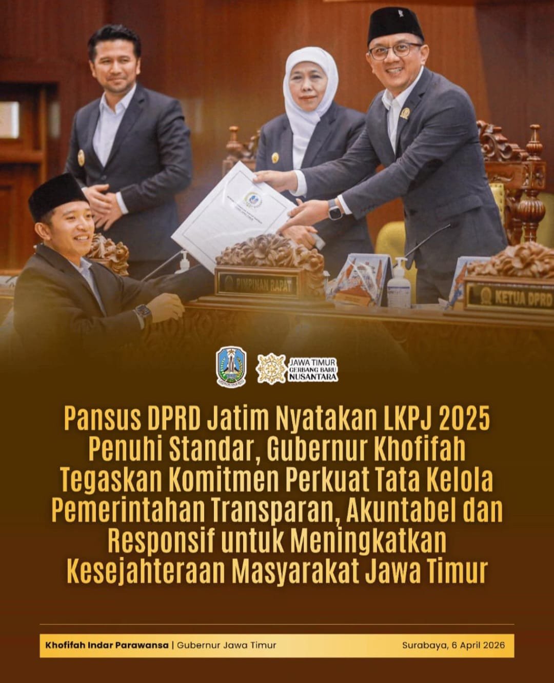 Ia menambahkan, berbagai catatan dan rekomendasi yang disampaikan oleh DPRD akan menjadi bahan evaluasi strategis bagi Pemerintah Provinsi Jawa Timur dalam meningkatkan kinerja pembangunan.