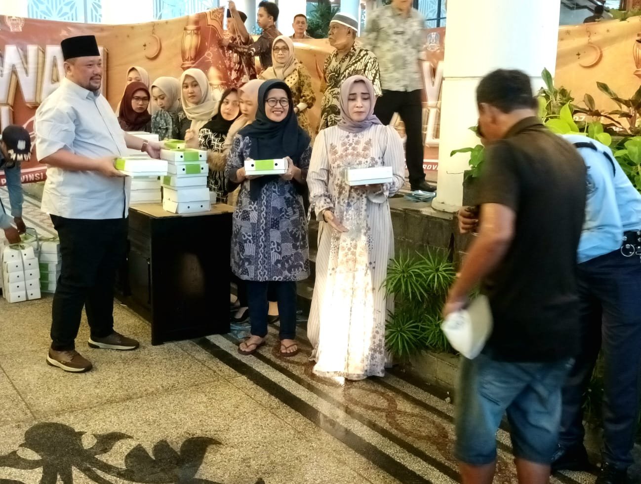 Pembagian dilakukan di depan kantor Sekretariat DPRD Jatim. Sasaran utamanya warga yang masih berada di perjalanan agar bisa langsung berbuka saat azan magrib berkumandang.