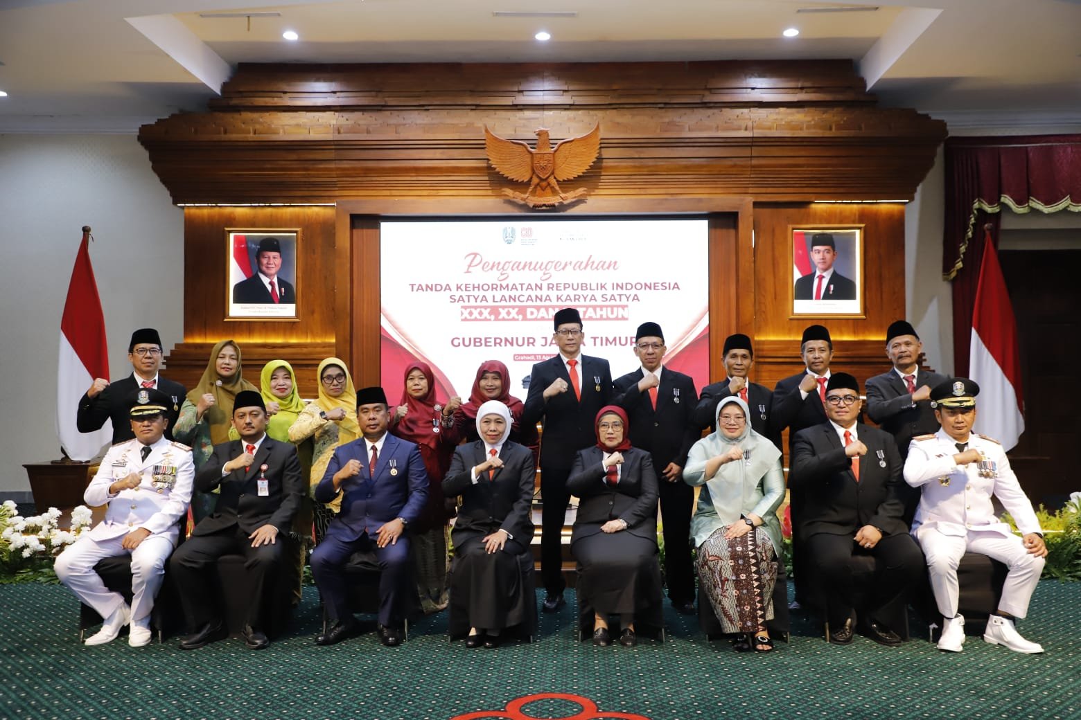 “Saudara semua sudah melalui proses panjang. Ini bukan bim salabim, tetapi hasil pengabdian puluhan tahun. Karena ini penghargaan dari Presiden, sesungguhnya ada amanat dan mandat yang harus dijaga. Teruslah mendedikasikan energi positif tidak hanya untuk Jawa Timur, tapi juga untuk Indonesia,” tegasnya.