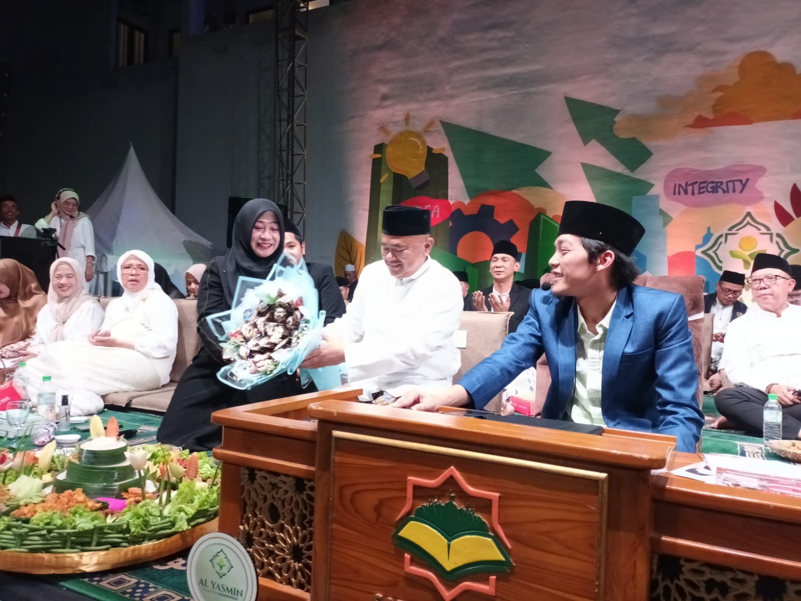 “Dengan pesan kebaikan dan pesan damai dari Gus Iqdam itu, kemudian disambung dengan Pesantren Digipreneur Al-Yasmin yang sejak awal memang diyakini Ibu Gubernur Khofifah bahwa pesantren ini justru akan menyambungkan akar tradisi dengan aransemen digital dari Generasi Z, sehingga ada banyak keindahan dari teknologi digital, sehingga santri di sini justru yang pertama memajukan agama sesuai perkembangan teknologi. Buktinya, malam ini ada drone dengan tulisan Allah, Muhammad, Al Yasmin yang indah,” katanya.